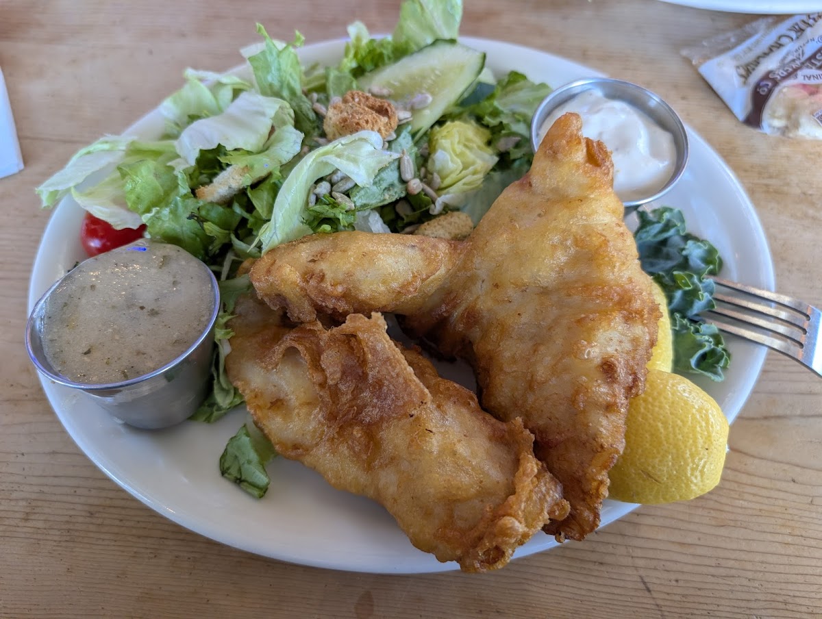 Good job guys! We arrived on a Friday at 2pm we were seated right away. The food was good and fresh. Fish tacos Club sandwich Billy burger Fish and chips Clam chowder All great! Really enjoyed the onion rings, they had a good beer selection to go with. Our waiter and server were both very nice friendly and accommodating. I highly recommend checking them out, prices are fair for the area.