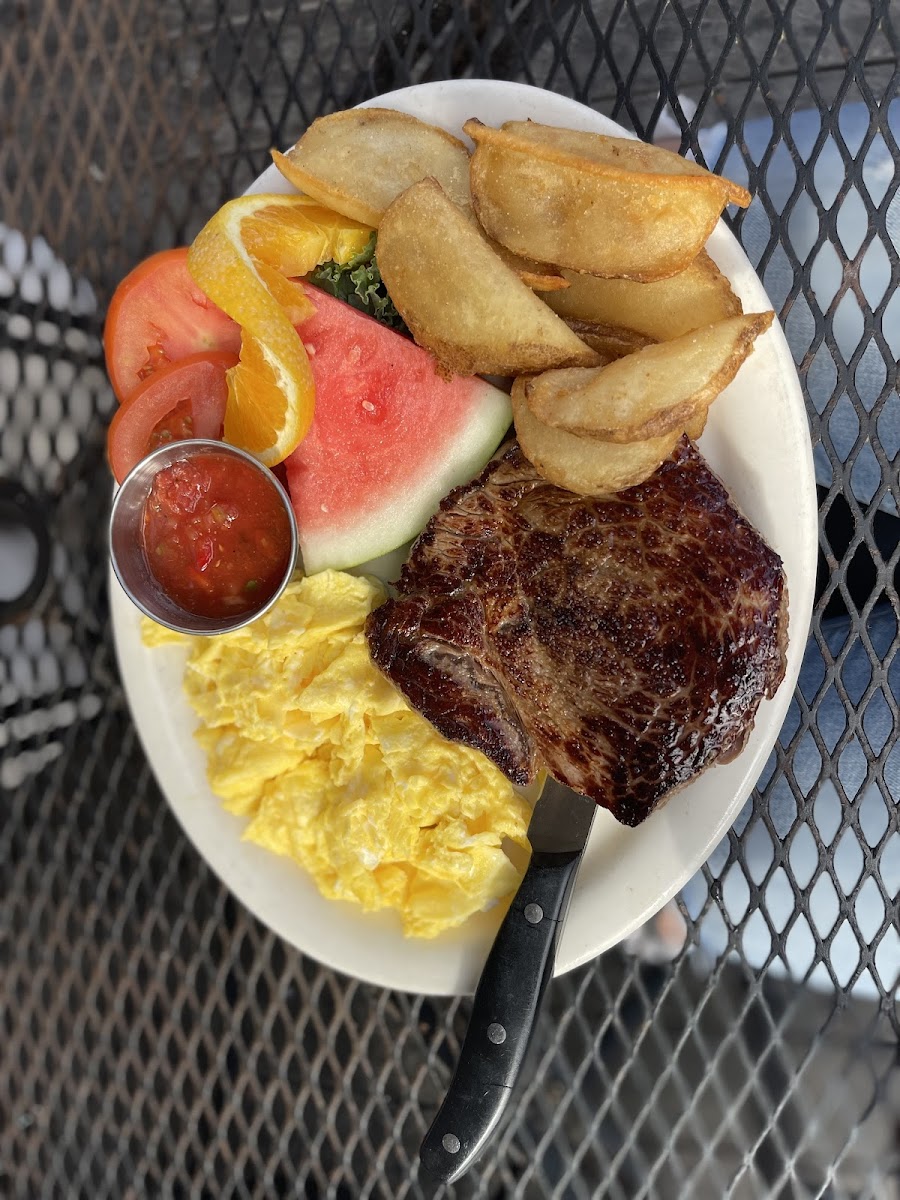 Great food w superb service, lots of help and they all are happy to help you even if they are not your original table server. Enjoyed a great cheese burger the patty was seared crispy charbroiled onion rings and potatoes are good. mmm. We were plenty full yet we decided to take home some pie and cobbler. Stick to the ice cream desserts or other options. I realize fruits need to be in season to get the best result. It wasn’t horrible but not the best pie peaches apricots, especially at $15 a pop. Tgey could tween the recipe by adding more sugar and spices maybe. We will be back for prime rib dinner and some fish and chips.