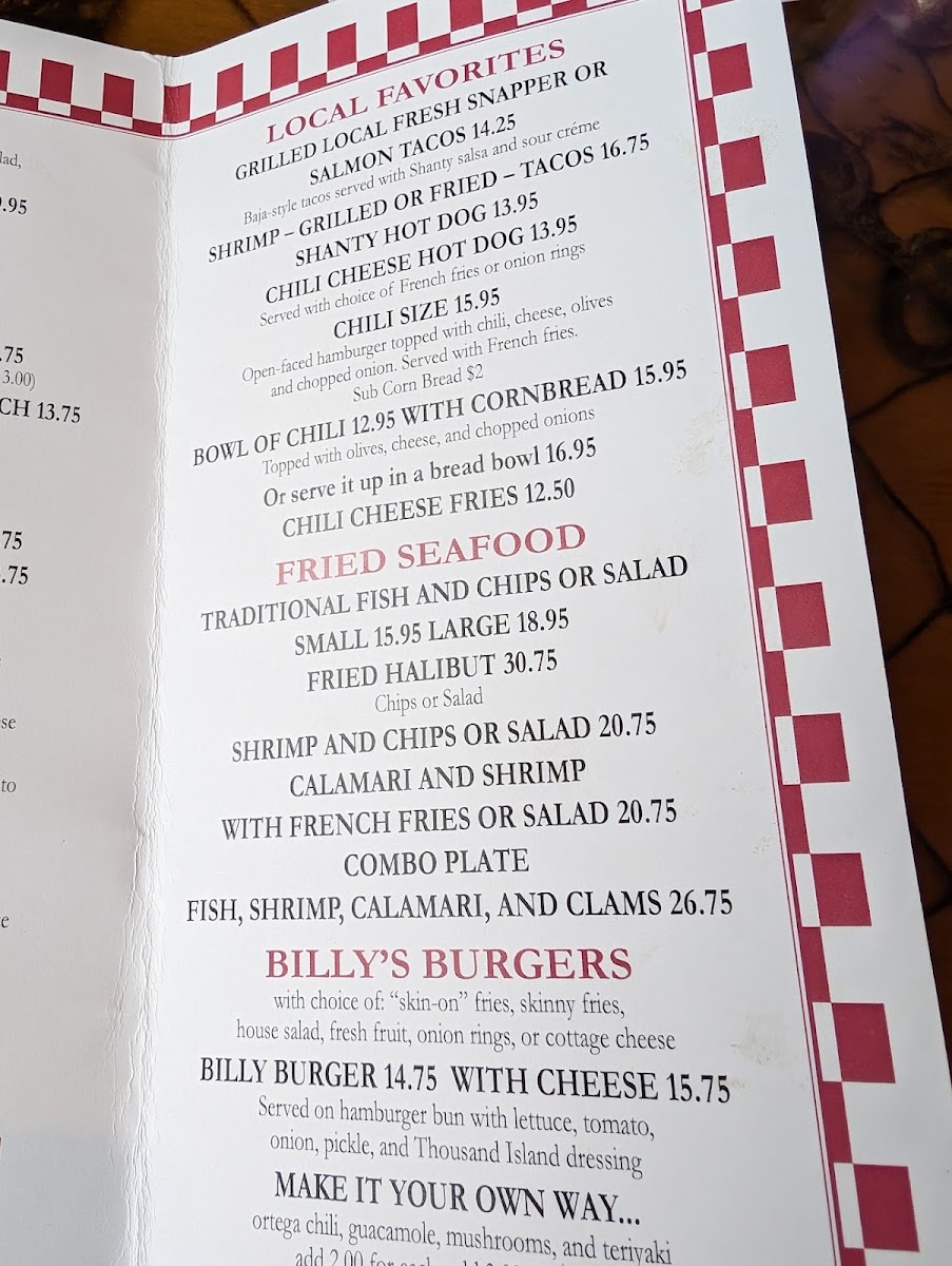Expect fresh, local flavors highlighted in popular choices like the crispy Fish and Chips Platter and savory Fish Tacos. The menu also features comforting staples such as Crab Cakes Benedict and Crab Melt, alongside lighter options like fresh Ceviche or a simple Soup and Salad. For those seeking a heartier meal, charbroiled local Red Snapper and Salmon Tacos make for satisfying options that pair well with the welcoming, vintage-inspired atmosphere.
